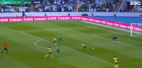 下半场双方都未能把握住进球机会,首次首发的马内发挥平平,早早被换下场。第84分钟,加里卜禁区内分球,C罗连续晃开防守球员后打门击中立柱弹出,错失梅开二度的机会,最终利雅得胜利3-1顺利赢下。