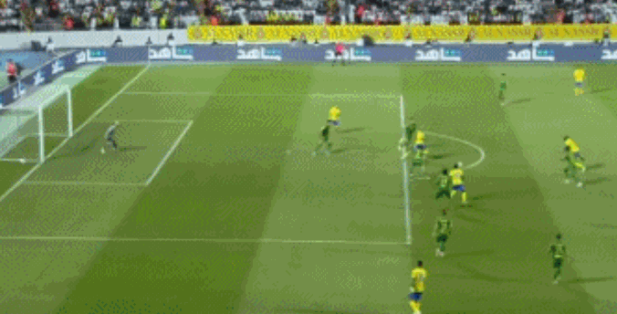 第75分钟,特莱斯长传,马内禁区内被放倒,裁判观看VAR之后判罚点球!C罗右脚主罚破门,1-0!利雅得胜利取得领先。