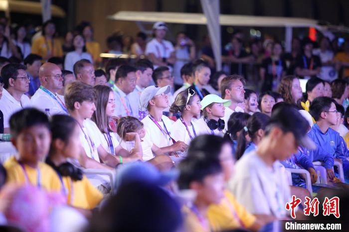 8月11日,海内外嘉宾、选手参加2023第十五届青岛国际帆船周·青岛国际海洋节开幕式。(蔡亚群)
