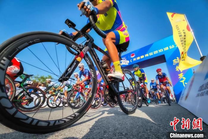 由中国自行车运动协会等单位主办的“2023中国公路自行车职业联赛”第五站的比赛13日在天津静海区团泊湖开赛。 中国公路自行车职业联赛是中国顶级公路自行车赛事,也是唯一的国家级职业联赛。作为首届中国公路自行车职业联赛的第五站,天津静海区团泊湖站共设置职业赛和健身骑游赛两个组别。其中,“职业赛”赛事线路总里程182.2公里,强度较大;“健身骑游赛”赛事线路总里程17.4公里,以体验健康、欢乐、分享为目的,鼓励更多人参与到骑行健身的队伍之中。