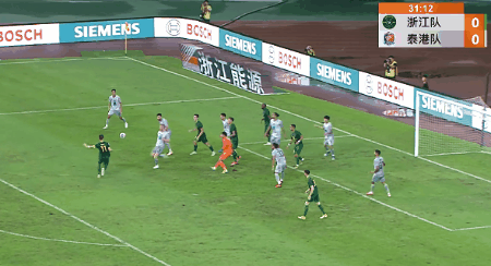 第10分钟,泰港门将颂蓬解围失误,穆谢奎面对空门踢高。