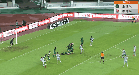 第20分钟,梁诺恒在禁区前沿对塔尔德利犯规,主裁判罚前场任意球,塔尔德利直接打门,稍稍偏出远门柱。