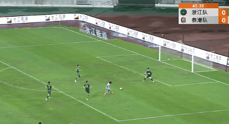 第46分钟,塔尔德利直塞禁区,志村誊形成单刀,一脚打偏,浙江队躲过一劫。