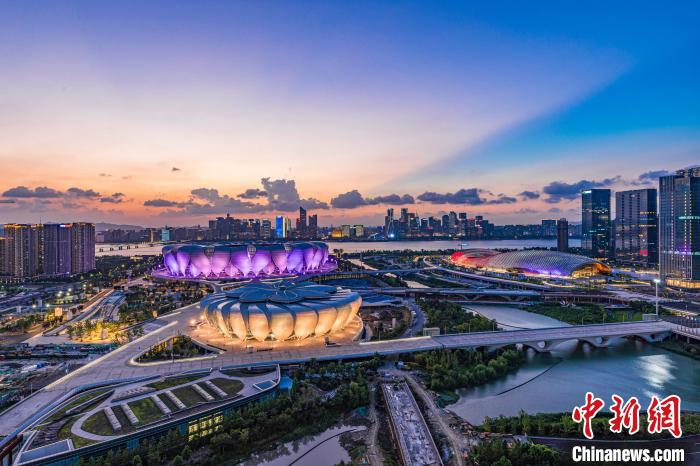 杭州奥体博览城三馆通过绿电点亮。丁豪摄