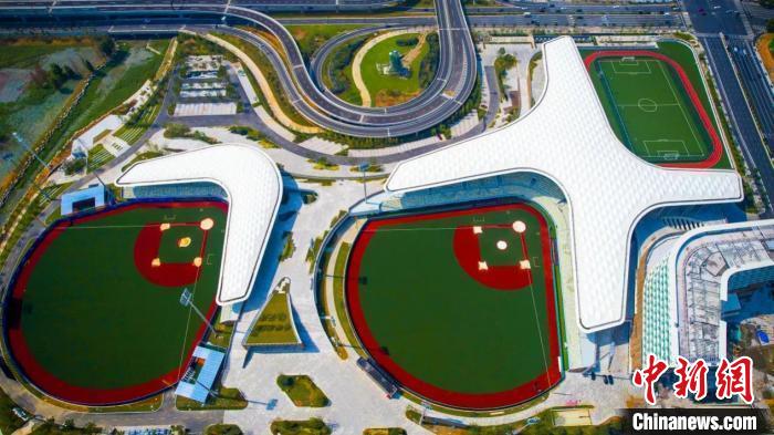 航拍绍兴棒(垒)球体育文化中心。蒋尼克摄