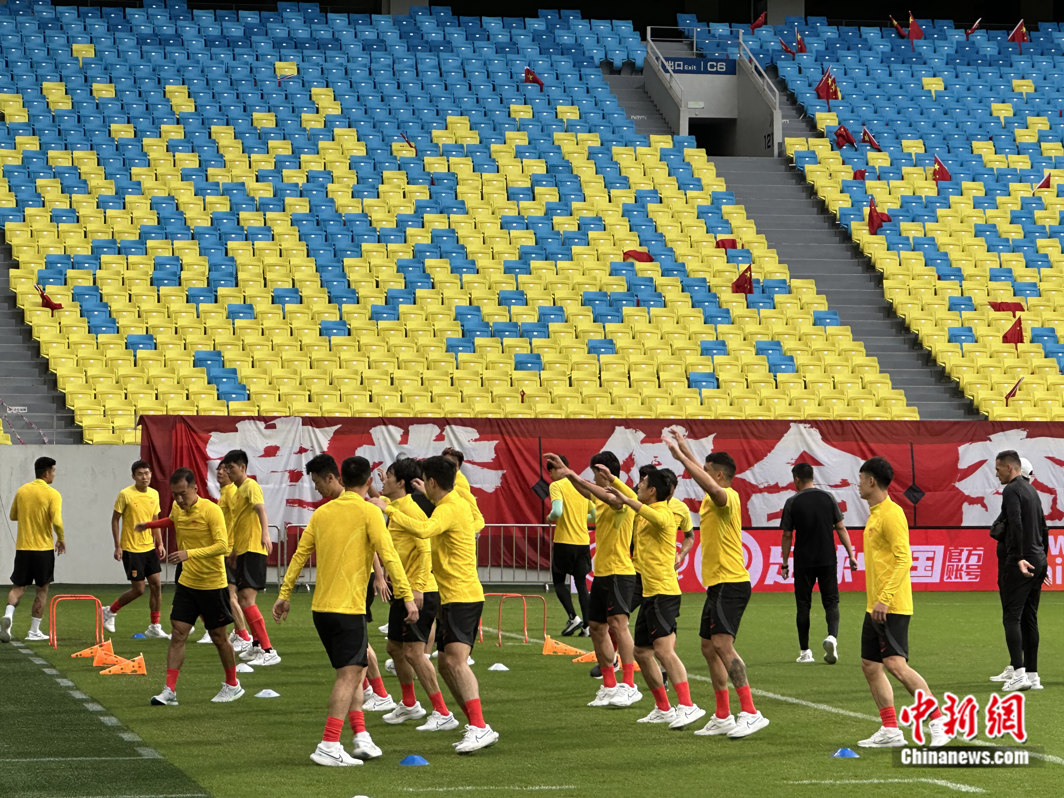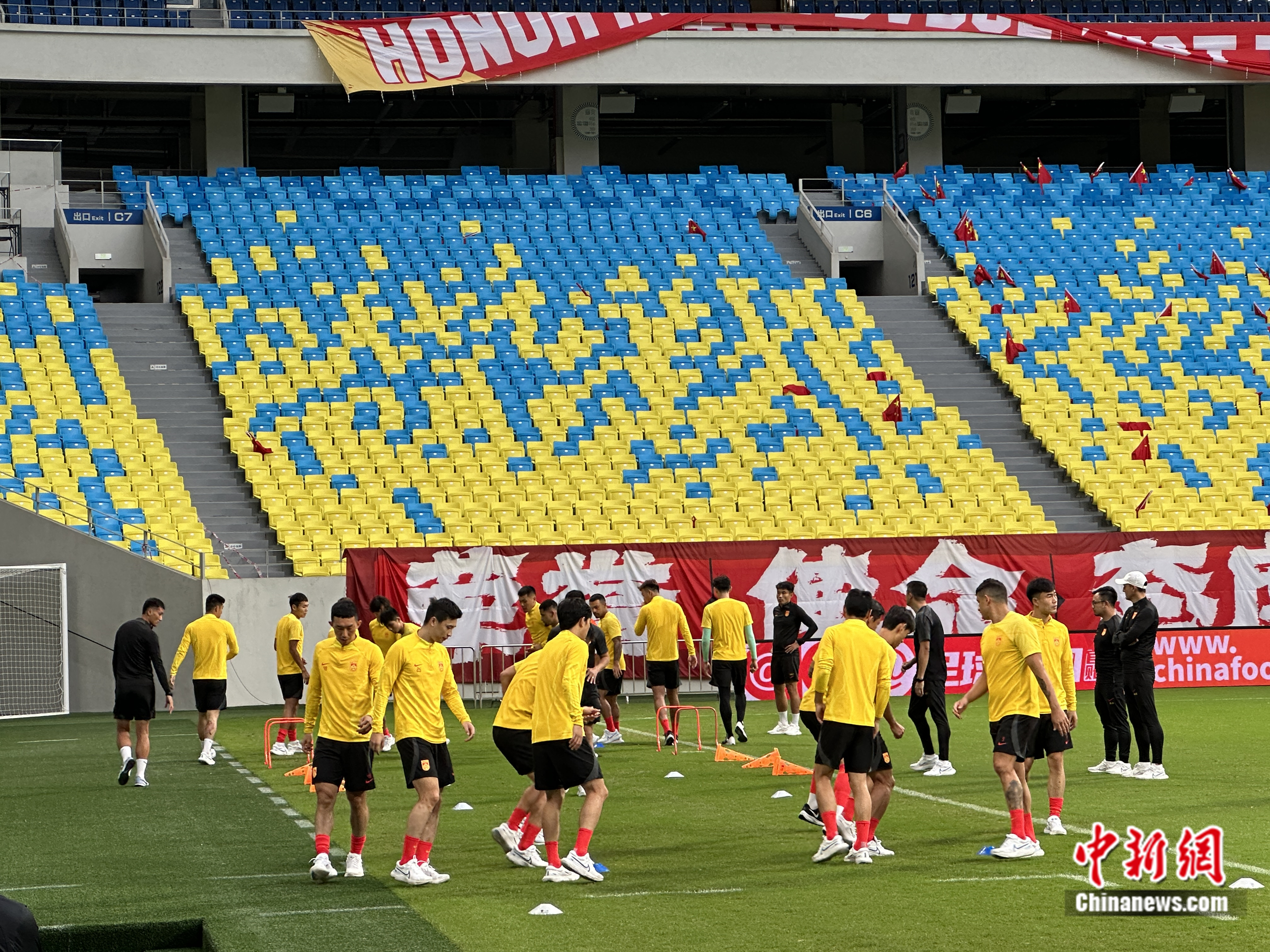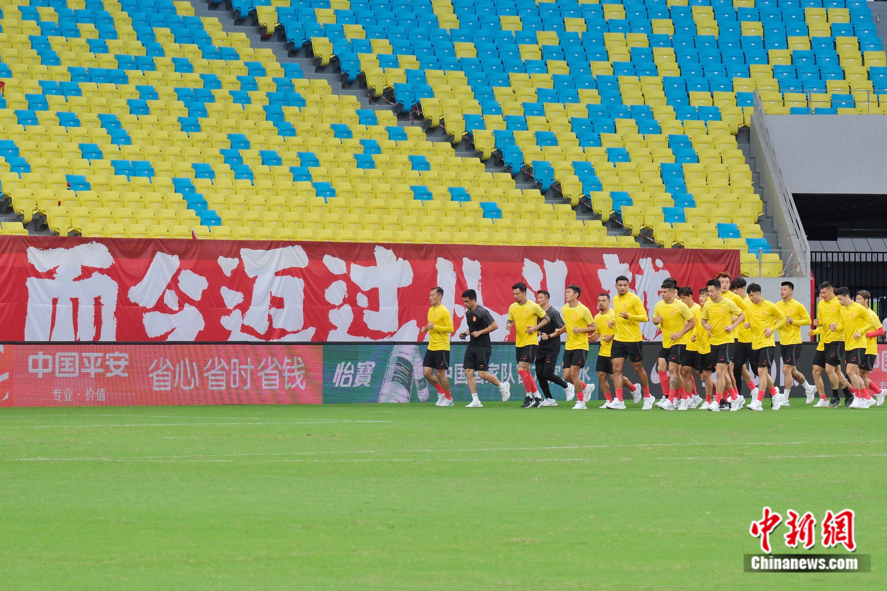 国足赛前踩场训练。中新网记者 卞立群 摄