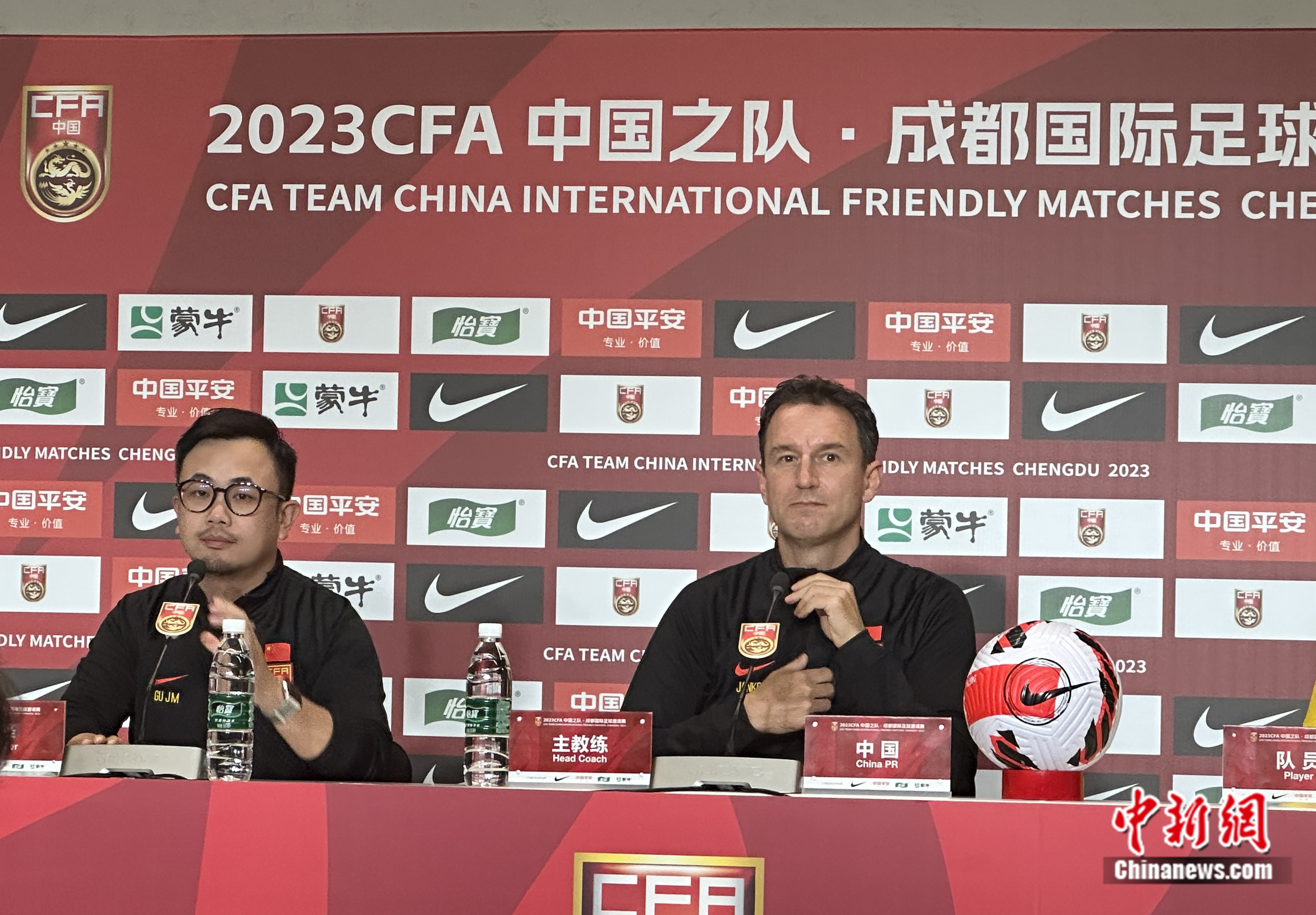 国足主帅扬科维奇在赛前新闻发布会中。中新网记者 卞立群 摄