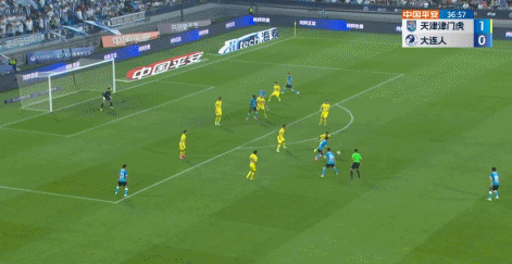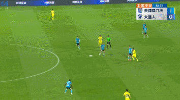 【关键焦点】 第5分钟,巴顿送出妙传,贝里奇持球转身被大连人球员干扰后摔倒,身后的郭皓捡漏推射空门得手,津门虎1-0大连人!
