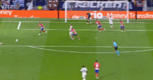 第36分钟,克罗斯禁区外围扣过防守球员之后完成低射破门,帮助皇马1-2扳回一球。