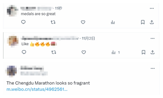 “里面有成都、无锡、日照、北京、天津、淮南马拉松……”一位网友于评论区中这样写道。 30日,#迷死老外的中国马拉松奖牌#话题词条登上微博热搜,截至发稿时,阅读量已超过825万。 在海外社交平台中,该条视频被网友发布后得以扩散,深受外国网友喜爱,曾有人表示想收藏其中的几款奖牌。 “这些奖牌设计得太漂亮了”。 “我很喜欢这些奖牌”。 “成都马拉松奖牌上的大熊猫太可爱了”。