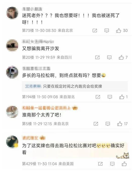 就连平日里不经常运动的网友都表示:“馋哭了!看见这些奖牌,我有了离开沙发去跑马拉松的冲动。”