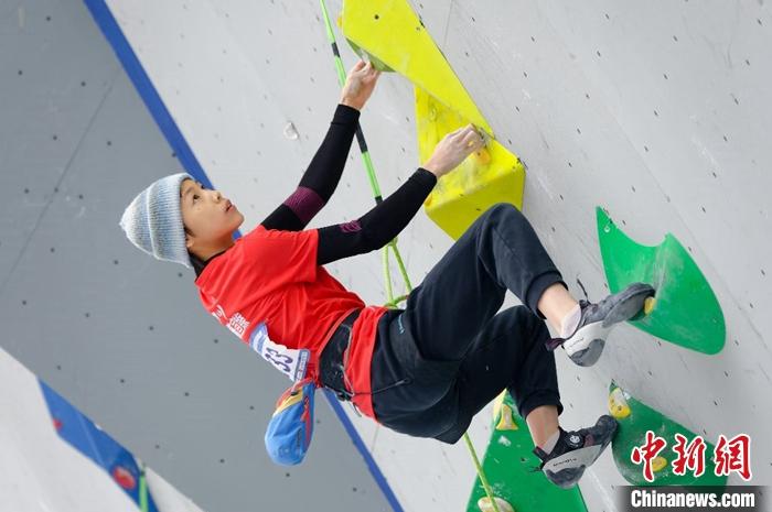 作为国内创办最早、水平最高的攀岩赛事,从1993年首届赛事举办至今,全国攀岩锦标赛已进入而立之年。全锦赛一直以来都是国家队选拔人才的重要平台,作为今年攀岩项目的压轴赛事,此次赛事竞赛规程中明确规定了⽐赛成绩将作为国家攀岩集训队参加2024年国际⽐赛运动员选拔的重要依据。 此次男女子速度项目报名参赛人数也创了纪录,其中男子速度项目参加人数超过70人,女子速度项目参加人数超过40人。这也充分显示了中国攀岩在速度项目上的深厚人才储备,包括世界杯分站赛冠军、亚运会冠军、中攀联赛冠军、冠军赛冠军以及世界青年锦标赛冠军、亚洲青年锦标赛等多名冠军选手同台竞技。 高水平的赛事也为运动员创造佳绩提供了最好的平台。虽然男女子速度赛的冠军分别被已经获得巴黎奥运会参赛资格的龙金宝和邓丽娟摘得,但与顶尖运动员同场PK则更能激发自己的潜能。其中16岁的亚青赛U18速度冠军储守宏一路过关斩将,PK掉曹龙、林雨等高手,大决赛惜败给龙金宝获得亚军。而19岁的浙江队周娅菲不仅PK掉亚运会速度接力冠军汪生艳,更是创造了6.93秒个人最好纪录。 李美妮比赛中 赛事主办方供图
