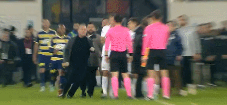 裁判吹响终场哨的那一刻,安卡拉古库俱乐部主席法鲁克-科卡因不满主裁判哈利尔-乌穆特-梅勒的判罚,怒气冲冲跑进场内,一拳将梅勒直接击倒,旁边众人迅速拉开了有意继续向前的科卡。现场视频显示,躺在地上的梅勒在护着头的时候,又被不明身份的人补了一脚。