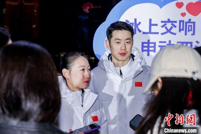 12月12日,中国花样滑冰队队员彭程(左)和王磊(右)接受采访。上海体育局供图