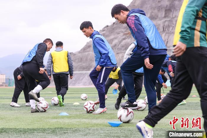 “学转英超”基层足球教练培训项目12月12日在贵州榕江县开班,图为“学转英超”培训现场。 中新社记者 瞿宏伦 摄