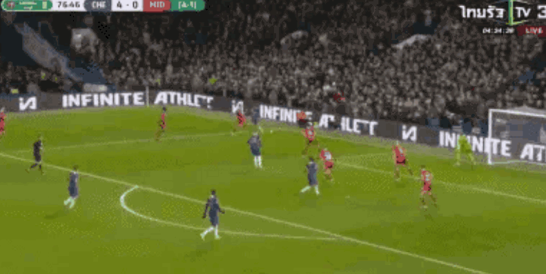 第42分钟,帕尔默前场抢断成功,禁区内左脚推射破门,4-0!