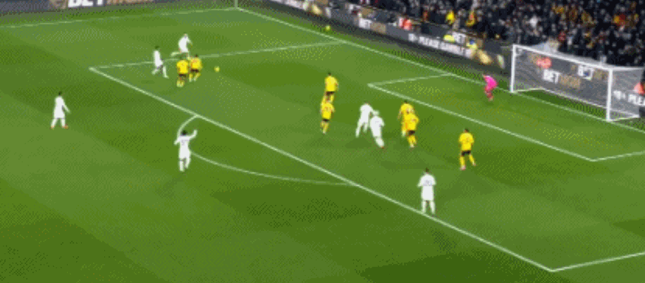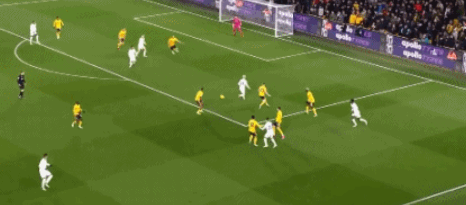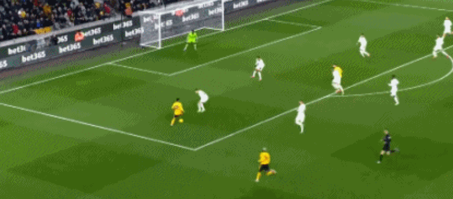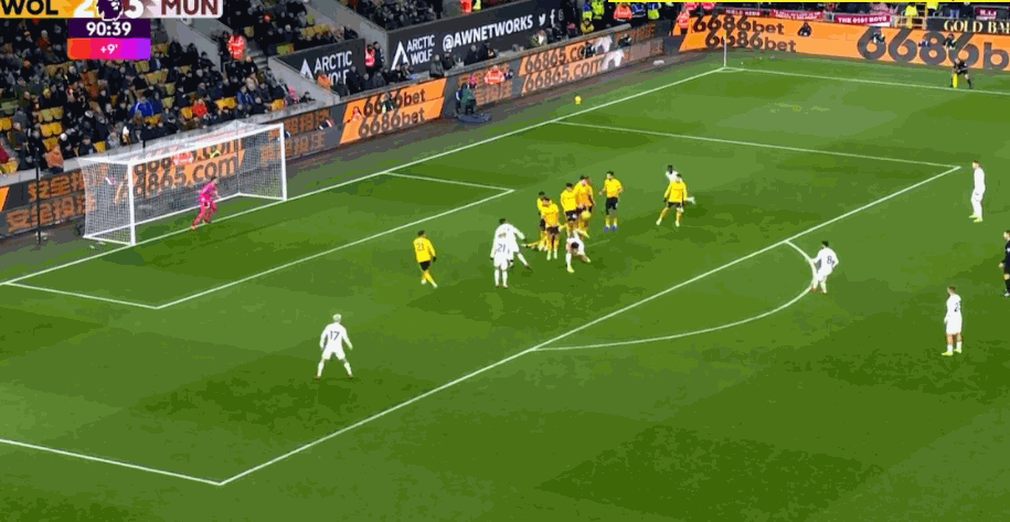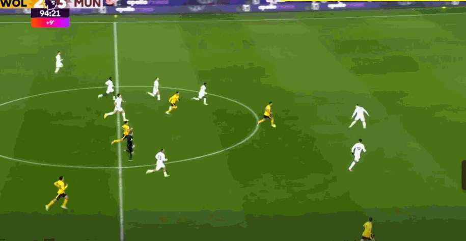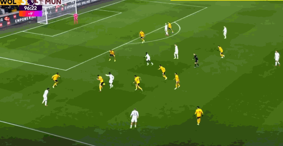 第95分钟,狼队快速反击,内托禁区内左脚低射入网,奥纳纳目送,3-3!