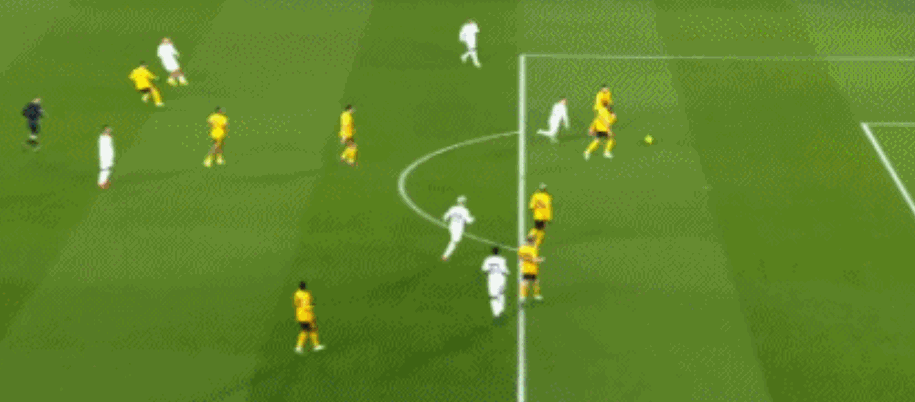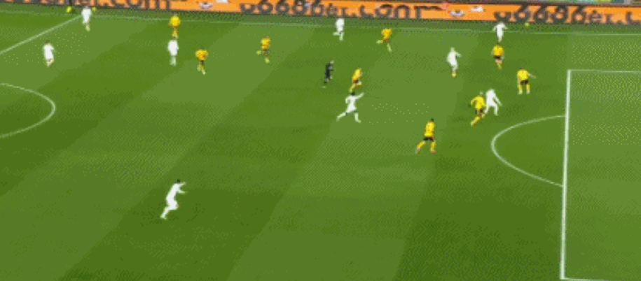 第45分钟,加纳乔直塞,霍伊伦左脚推射入网,但越位在先,进球无效。