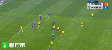第5分钟,西海岸前场高压逼抢,津门虎短传将球导出