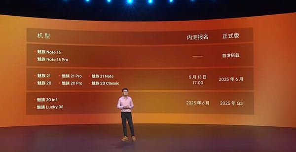 官方表示,魅族Note 16系列将首发搭载魅族Flyme AI OS 2,魅族21系列、魅族20系列将在6月获得推送,魅族Lucky 08将在2025年第三季度获得推送。