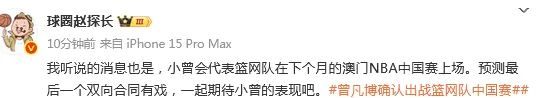 [篮球] 篮网双向合同强力竞争者!媒体人曝曾凡博将会在NBA中国赛上场 |