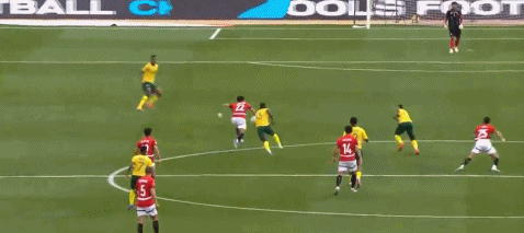 第39分钟,萨拉赫禁区内突破被穆达乌打到面部,主裁判回看慢镜头之后判罚点球,萨拉赫一蹴而就,南非取得领先。
