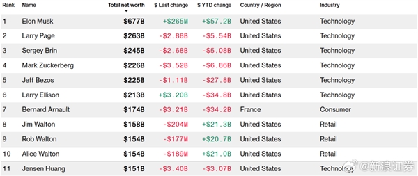 其中,财富缩水最严重的当属甲骨文董事长Larry Ellison,他今年的财富已经下降348亿美元至2130亿美元,距离巅峰时期更是下降超过45%。