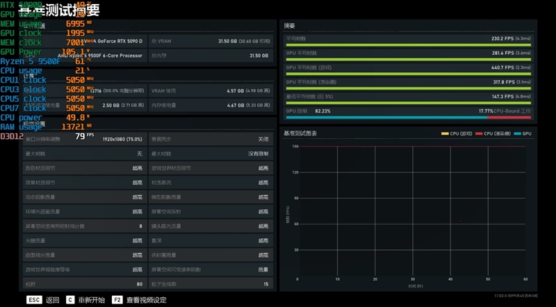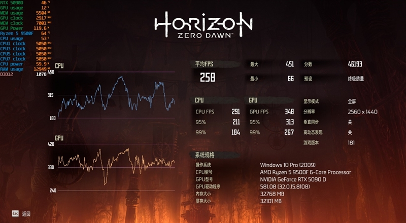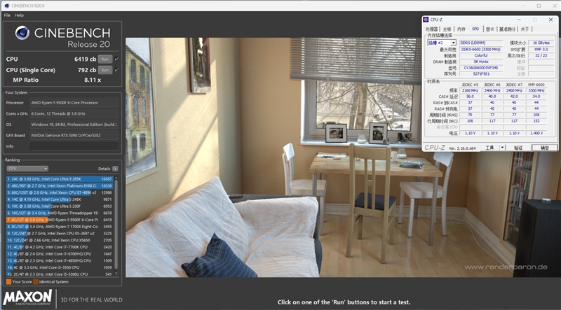 、前言:首款不带核显的锐龙9000处理器 Intel酷睿第14代处理器虽然性能不错,但功耗却高的惊人!新一代的Ultra 200S处理器解决了功耗问题,但游戏性能却开了倒车,顶级的Ultra 9 285K处理器甚至还不如锐龙5 9600X。 而AMD这边,新一代Zen5架构提升了16%的IPC性能,同时还进一步提升了运行频率。 可以说,锐龙9000系列处理器让AMD近20年来第一次真正意义上全面战胜了对手。 现在AMD又一次拓展了锐龙9000系列的产品线,推出了首款不带核显的Zen 5处理器产品—锐龙5 9500F! 与其他桌面Zen 5处理器一样,锐龙5 9500F也是chiplet小芯片设计,包括两一个4nm的CCD、一个5nm的IOD。 其中CCD面积为70mm2,拥有86亿个晶体管,而IOD的面积则是122mm2,34亿个晶体管。 规格方面,锐龙5 9500F采用6核心12线程设计、基础频率3.8GHz、加速频率5.0GHz,拥有6MB二级缓存和32MB三级缓存、TDP 65W。 相比锐龙5 9600,除了没有核显以及频率低了0.2GHz之外,其他没有任何区别。 我们都知道桌面Zen 5处理器普遍可以稳定运行在5.7GHz的频率上,这也让锐龙5 9500F拥有非常强悍的超频潜力,超频后的游戏性能甚至能超越i家最强的i9-14900KS。 对于有一定动手能力的DIY玩家而言,这款处理器会有非常高的可玩性。 以下是锐龙9000处理器的规格参数: 二、图赏:第二款自带风扇的锐龙9000处理器 Wraith Stealth 幽灵散热器,这是第2款自带散热器的锐龙9000处理器(第一款是锐龙5 9600)。 处理器正面,生产日期25年第32周。 背面,AM5接口。 三、游戏性能测试:战胜i5-14600K 1、刺客信条:英灵殿 2、地平线:零之曙光 3、孤岛惊魂5 4、孤岛惊魂6 5、古墓丽影:暗影 6、黑神话:悟空 7、霍格沃茨之遗 8、极限竞速:地平线5 9、全面战争:战锤3 10、赛博朋克2077 11、坦克世界 12、无主之地3 13、战争机器5 14、中土世界:战争之影 测试数据汇总如下: 在搭配RTX 5090D这个级别的显卡时,很多游戏在2K分辨率下的帧率甚至比1080P更高。 综合14款游戏的测试数据,在1080P分辨率下,锐龙5 9500F的平均帧率要比i5-14600K高了2.7%左右,到了2K分辨率,锐龙5 9500F依然能领先超过1%。 四、理论性能测试:略强于锐龙5 7600X 1、CPU-Z 2、CineBench R15 3、CineBench R20 4、CineBench R23 5、CineBench 2024 6、POV-Ray 7、7-zip 8、X264 FHD Benchmark 9、X265 FHD Benchmark 测试数据汇总如下: 锐龙5 9500F因为频率低了400MHz,相比于锐龙5 9600X性能也有所损失,单核、多核性能的幅度都在7%。 五、 烤机与内存缓存性能测试:游戏功耗只有对手一半 1、烤机测试 使用AIDA64 FPU烤机10分钟,锐龙5 9500F的功耗初期为122W,但马上会撞上95度温度墙,此后会一路降到112W,此时的烤机频率约为4.7GHz。 2、内存缓存测试 我们使用的是七彩虹CVN DDR5-6600 16GBx2,测试时将频率降到6200MHz,时序调为30-38-38-96,同时开启技嘉主板的XMP/EXPO High Bandwidth Support(XMP/EXPO高带宽支持)。 实测内存读取、写入和复制带宽分别为63GB/s、88GB/s、59GB/s,延迟72.3ns。 3、游戏功耗对比 搭配RTX 5090D让CPU性能充分发挥,运行《霍格沃茨之遗》时,锐龙5 9500F的功耗为54W,而i5-14600K则高达97W。 六、总结:完胜对手 以下是本次测试小结: 1、游戏性能与功耗表现 即便是锐龙9000系列中最便宜的型号,锐龙5 9500F的游戏性能依然超越了i5-14600K,领先幅度约为2%。 由于频率有所降低,因此它的游戏功耗非常之低,即便搭配RTX 5090D顶级显卡让处理器性能充分发挥,锐龙5 9500F在大多数游戏中的功耗也只有50W左右,几乎比酷睿i5-14600K低了一半。 至于酷睿Ultra 5 230F,虽然这款处理器拥有不错的能效比,但并不适合搭配中高端显卡。 2、理论性能 锐龙5 9500F的加速频率与全核频率均为5.0GHz,不过实际上能达到5.05GHz,比锐龙5 9600X低了400MHz。 与上代的锐龙5 7600X相比,锐龙5 9500F在频率低了300MHz、功耗更低的情况发下,性能还要略强一些。 3、超频 Zen5处理器大多可以稳定运行在5.6~5.7GHz,也就是说锐龙5 9500F有非常富裕的超频空间。 有兴趣的玩家可以自己尝试一下,相信超频之后游戏性能超越i9-14900KS都不会太难。 锐龙5 9500F作为Zen 5家族的第一款无集显型号,官方售价来到了1299元,是目前最便宜的锐龙9000系列处理器,如果选择散片的话,应该1000左右可以拿下。 这样的价格却能做到游戏功耗只有i5-14600K一半的情况下,游戏性能反而更强,要知道i5-14600K/KF目前的价格都在1400元以上,这就显得锐龙5 9500F的性价比相当突出。 毫无疑问,锐龙5 9500F将让更多主流玩家享受到Zen 5架构、DDR5内存、PCIe 5.0 SSD组合“5力全开”的愉快体验:高性能、低功耗、超高性价比! 另外考虑到AMD这边“一板传四代”,锐龙9000仅仅只是第二代AM5接口处理器,现在的锐龙5 9500F处理器将来还能升级至少两代,而i5-14600K要是升级的话,就只能选择同一代功耗更高的i7/i9处理器。 锐龙5 9500F处理器目前已经正式开售。在AMD京东自营旗舰店,专为锐龙5 9500F处理器打造的首发促销活动正在火热进行中。