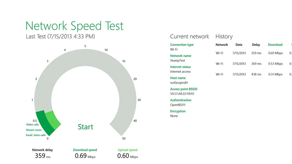 他们有此一说也是因为微软之前明明做的更好,早在Win8系统就开发了原生的网络测速功能,要比现在的网页测速好看多了,简洁友好,而且功能也很丰富,可以查看更多的网络状态信息,还能保留测速历史信息。