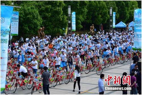 4月22日世界地球日当天,一场以“最益是杭州”为主题的千人公益骑行在杭州市江干区体育中心顺利落幕。杭州市委宣传部领导、元宝铺创始人兼CEO陈瑞贵、爆米花视频COO杨盛勇、腾讯•大浙网公益频道主编张云明、西湖汇网络公益联盟秘书处主任王坚勇、江干区网信办主任沈健、江干区体育局副局长姚忠平、杭州城投集团综合管理部部长黄李强、杭州公共自行车公司董事长陶雪军等多位领导与嘉宾出席启动仪式并一起号召绿色出行、保护环境。随后1000余辆城市公共自行车——小红车与1000多名身着白色骑行定制文化衫及蓝色骑行收纳包的参与者从江干体育中心出发,在杭城四月明媚的春光下,沿着之江路踏春而行,在沿江骑行道上形成了一道亮丽的风景线。